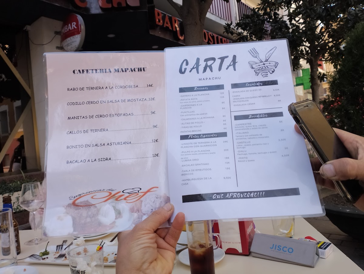 Typical dishes include savory salads such as ensalada de codorniz escabechada con vinagreta de olivas, grilled seafood like chipirones a la plancha, and a variety of meat options such as costillas barbacoa, jarrete guisado con champiñones, and entrecot with traditional side dishes. Tapas and small plates are also a significant part of the menu, making it suitable for casual dining or sharing.